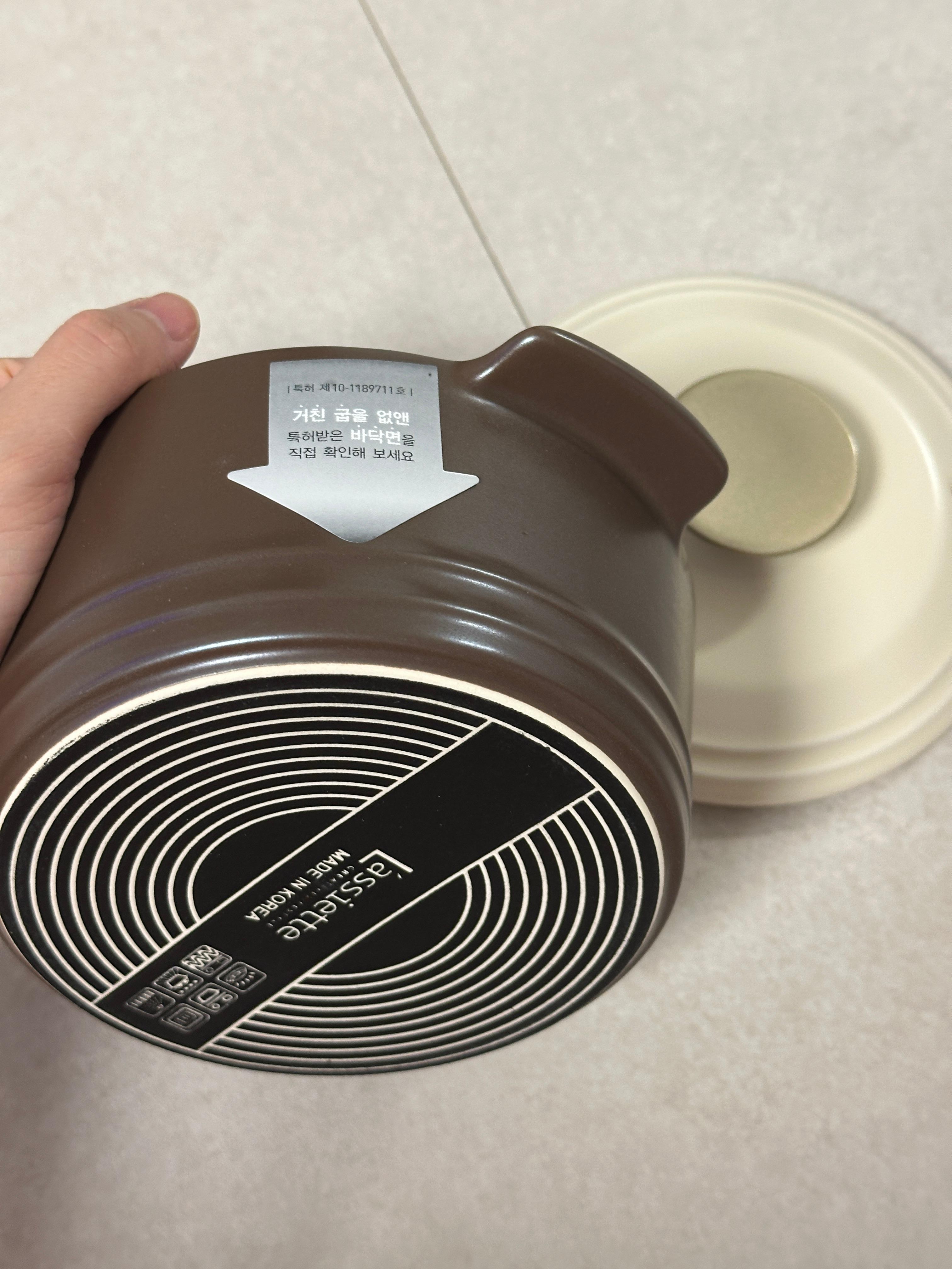 도자기 재질로 열 보존력 좋고, 디자인도 예뻐서 인덕션·가스 겸용 주방용품으로 추천드려요.